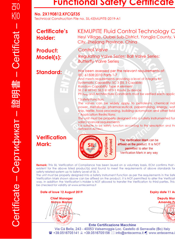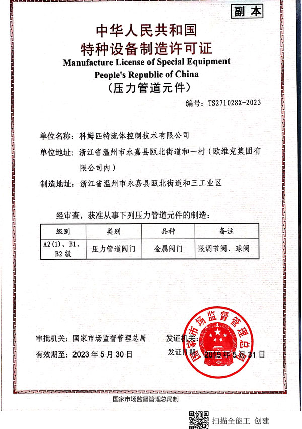 特种装备型式试验证书(球阀)